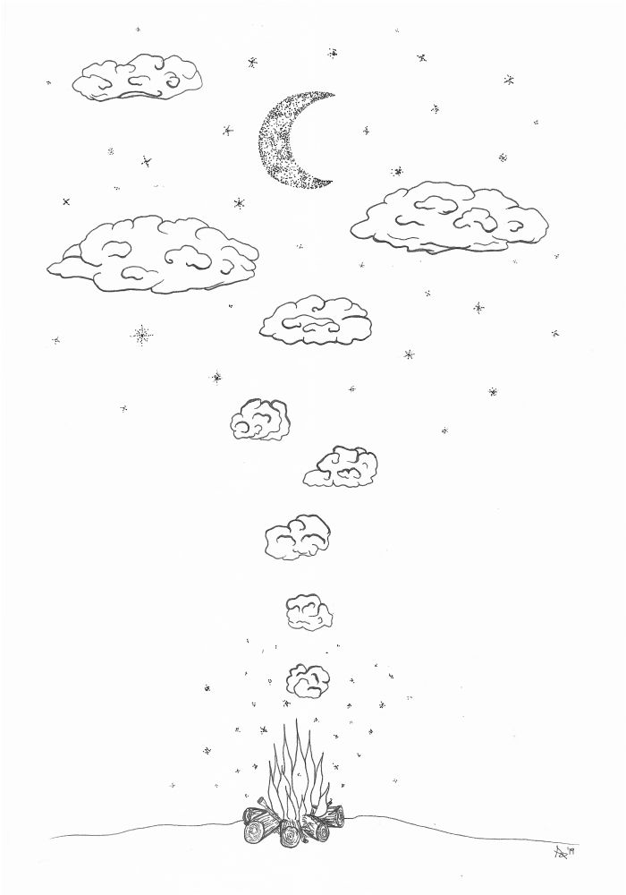 Lagerfeuer am Fluss – Urlaub in Bleistift, 2021